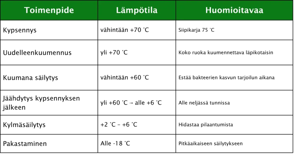 Elintarvikkeiden lämpötilanhallintaan liittyviä lämpötiloja
