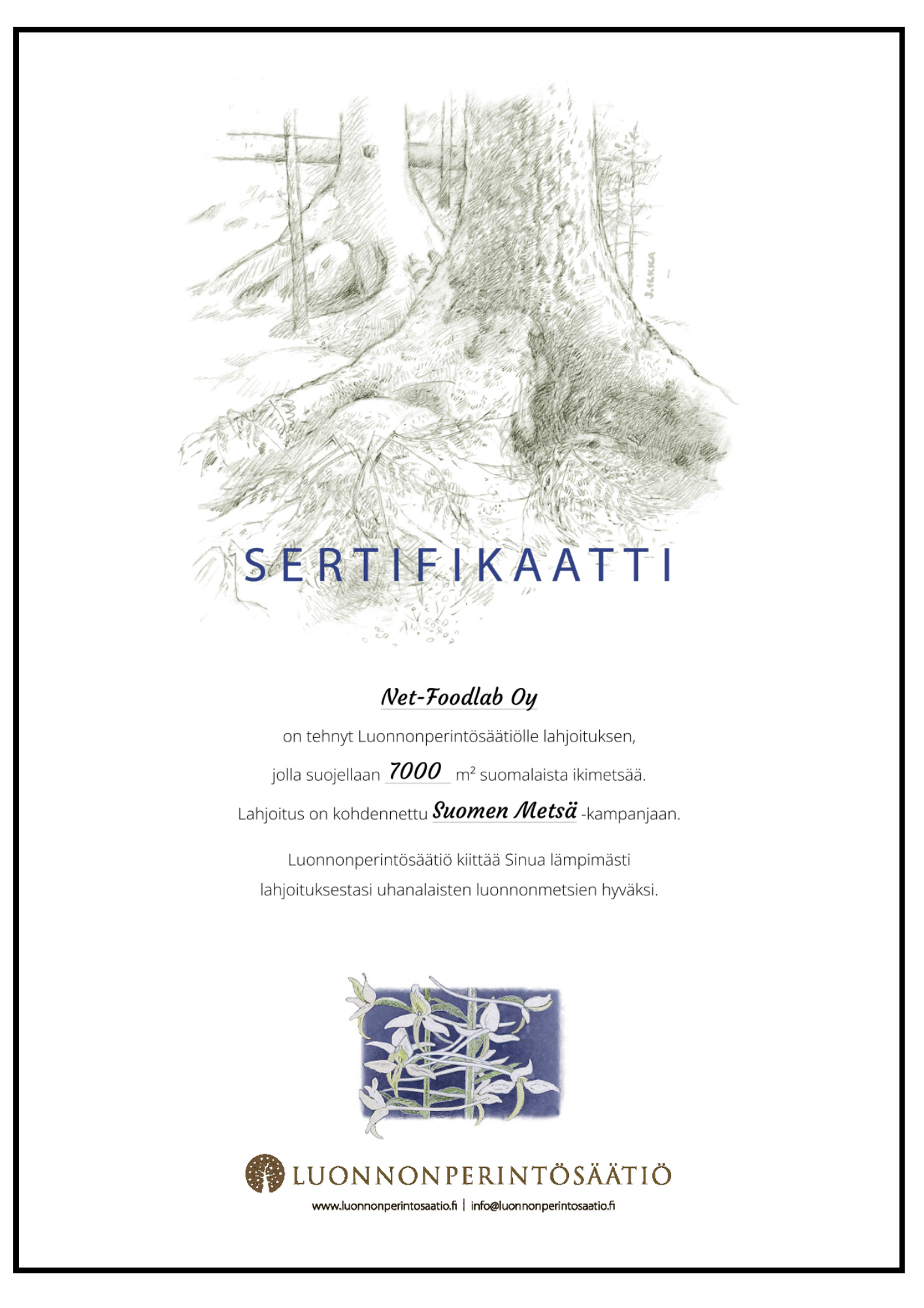 Meille on myönnetty Keskuskauppakamarin ”Hiilijalanjälki laskettu” -merkki. Merkki osoittaa, että olemme laskeneet toimintamme scope 1 ja 2 -päästöt kansainvälisen GHG-protokollan mukaisesti viimeisimmältä tilikaudelta. Merkki on osoitus vastuullisuudestamme ja halustamme kehittää toimintaamme ilmastovaikutuksia entistä kestävämmiksi.